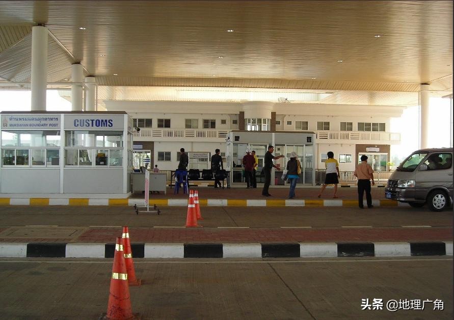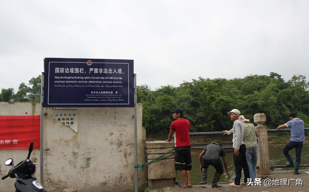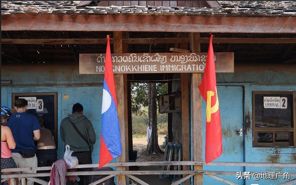 老挝-减普寨边境,某旗瞩目,显得比老泰边境更为陈旧。