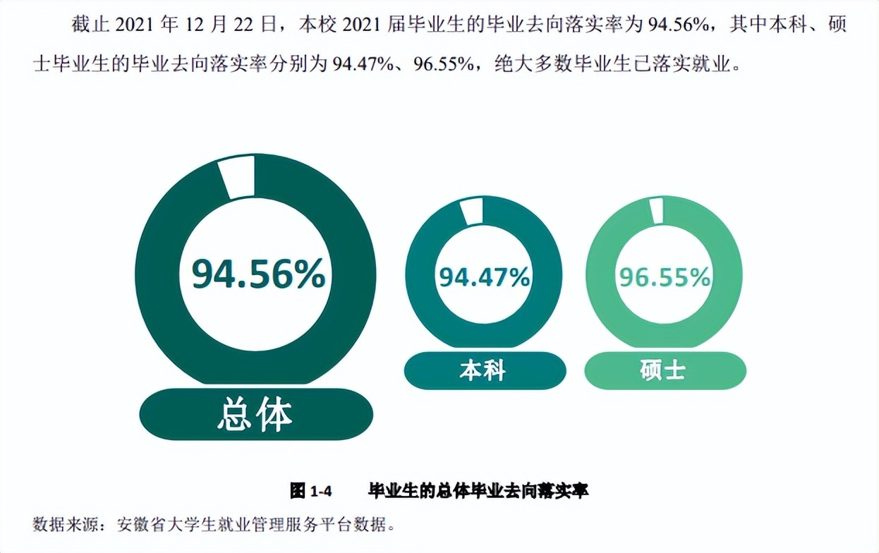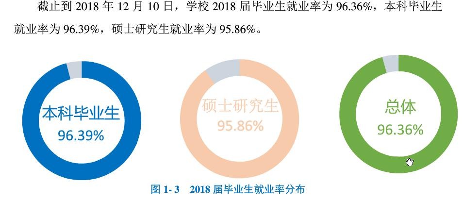 安徽工程大学本科就业率为96.39%,硕士就业率为95.86%。