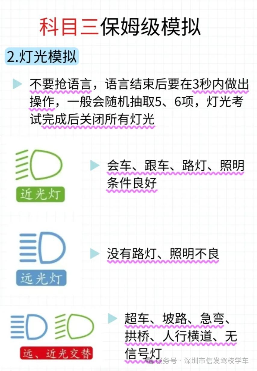 不要抢语言,语言结束后要在3秒内做出操作,一般会随机抽取5、6项,灯光考试完成后关闭所有灯光