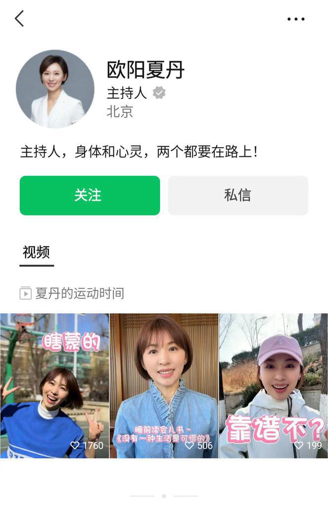 澎湃新闻(www.thepaper.cn)查询发现,曾担任央视主持人的欧阳夏丹已于近日在 B 站(bilibili)、微信视频号平台开通官方认证账号。