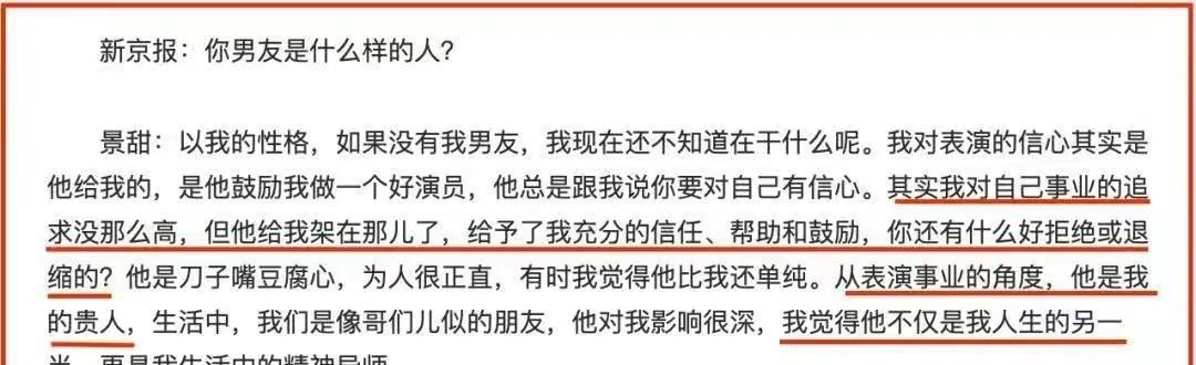 景甜直言对方是自己的贵人,不仅是人生的另一半,还是精神导师。