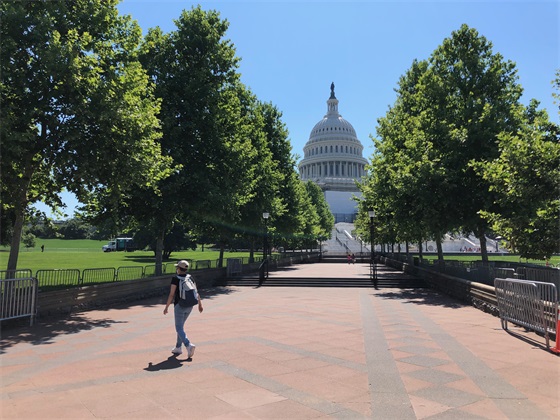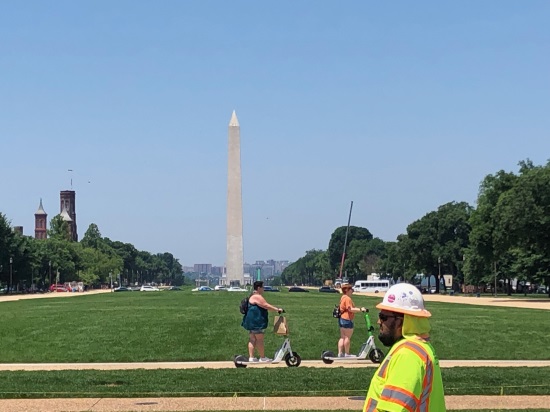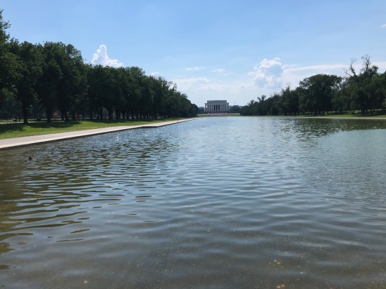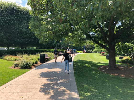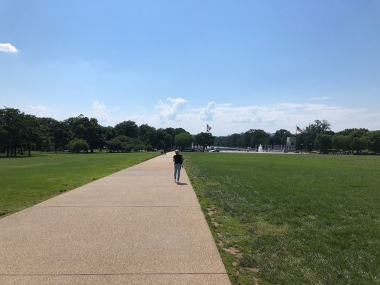 烈日炎炎的夏日里,在空旷的National Mall上行走是非常辛苦的,从东边的国会大厦到西边的林肯纪念堂足有三公里远,草坪上几乎是无遮无挡。