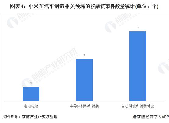 自小米宣布造车以来,公司在电动电池、半导体材料以及封装领域,分别进行了 1 起、3 起和 5 起投资事件。其中,自动驾驶和辅助驾驶方面的投资事件数量最多。