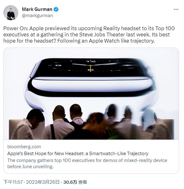 他还表示,苹果在上周,在乔布斯剧院,向公司约 100 位高管,展示了其 MR 混合现实头显设备,得到的结论是 " 演示非常精美、炫目,并且令人激动 "。
