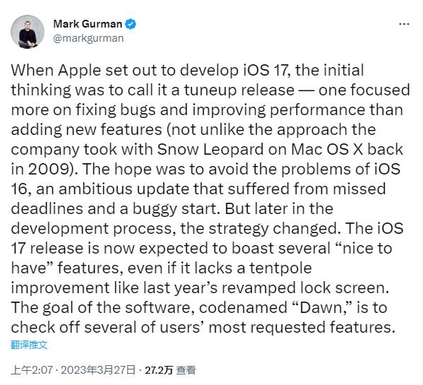 但 iOS 17 上,还是添加一些实用新功能,例如:侧滑手势、通话录音、软件双开等,安卓用户习以为常的功能,可能苹果用户也能体验到了。
