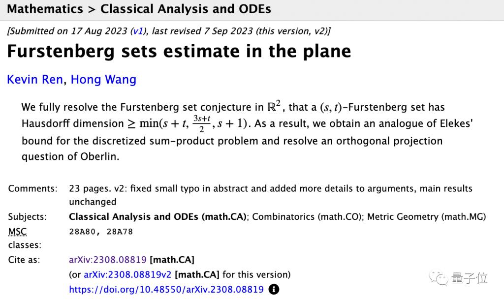 普林斯顿二年级研究生 Kevin Ren 和纽约大学王虹教授已经将它完整证明出来了。