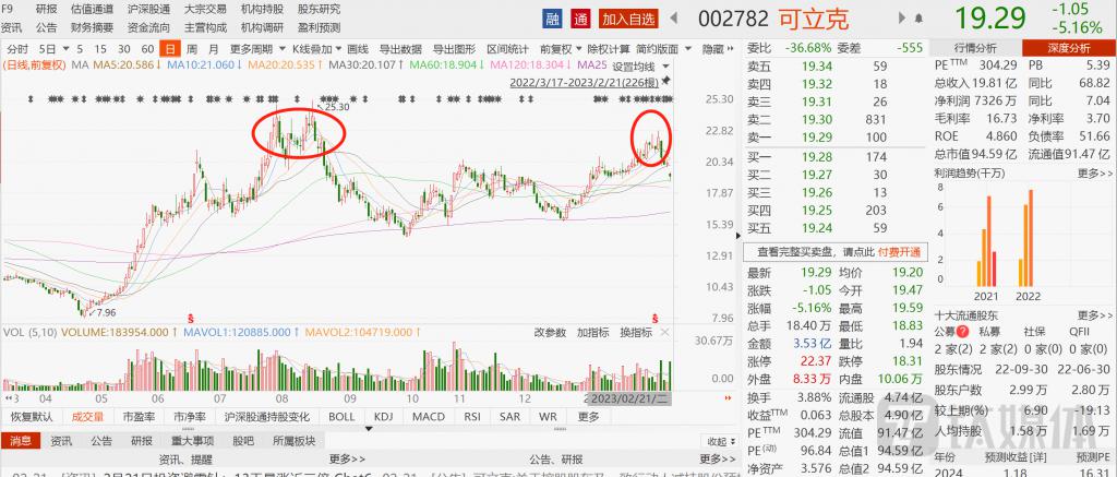 受消息影响,2 月 21 日,可立克开盘后跳空低开然后盘中大跌超 7%,截至收盘下跌 5.16%,股价收报 19.29 元,总市值 94.59 亿元。