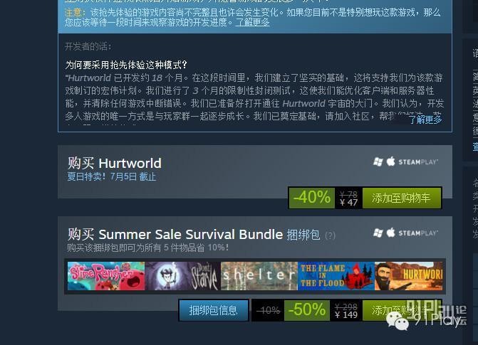 《Hurtworld》这款游戏属于暴力生存类游戏,同时也是IGN评测的高分游戏。此款游戏目前在steam上限时特惠,降价40%,原价78元,现价只需要47元,喜欢的朋友们可以尝试下这种类型的游戏,还是很有乐趣的!