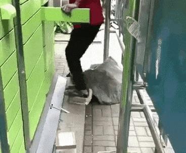 盒子太大塞不进去怎么办?还是咱快递小哥见多识广,踩扁了不就完了嘛
