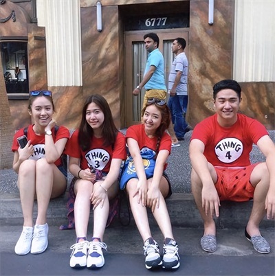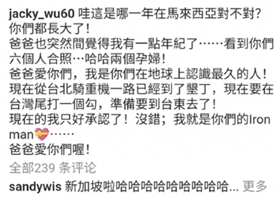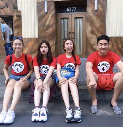 吴宗宪以为这组照片是在马来西亚拍的,大女儿吴姗儒纠正他,他们一家当时在新加坡旅游。有趣的是,4个子女的T恤上还按照年龄大小标了序号。