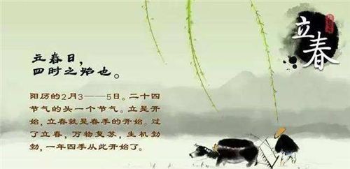 早在上古时期,便传承着以立春日前后为时间座标,以春耕为主题的农事节庆活动。这一系列的节庆活动不仅构成了后世岁首节庆的雏型(或核心)框架,而且它的民俗功能和构成因子也一直遗存至今。立春乃“二十四节气”之首,“立”乃开始之意,意思是从立春这天起,时序就进入春季了,故名。