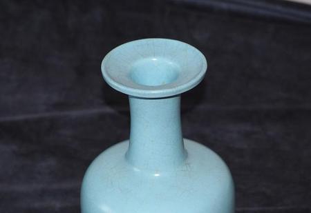 北宋汝窑鼎盛期天青釉盘口纸槌瓶。
