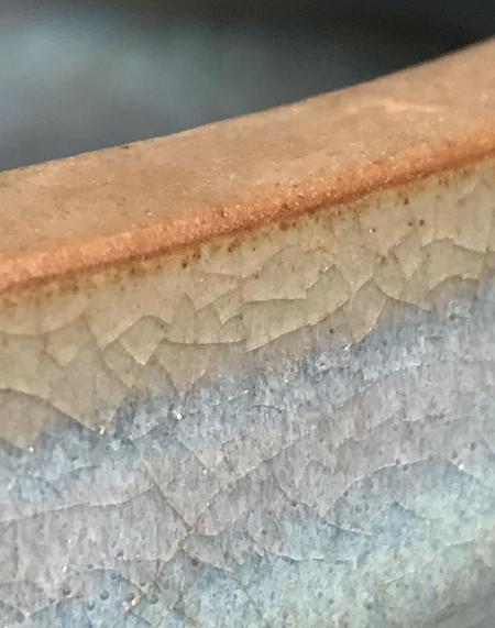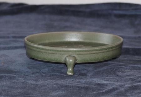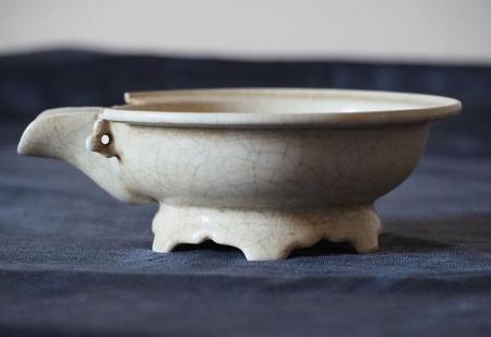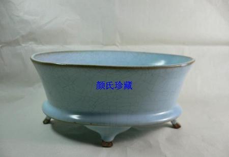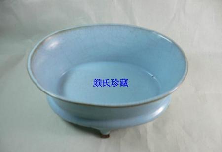 北宋汝窑鼎盛期天青釉四足水仙盆。
