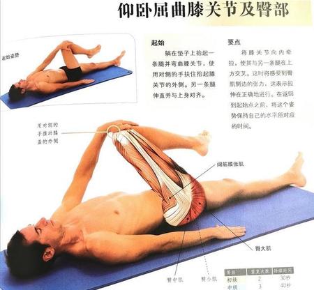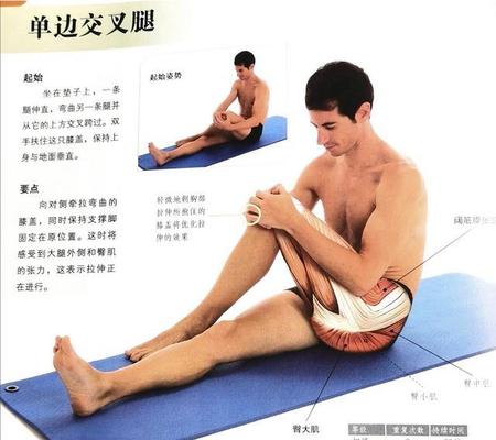 要点:将膝关节向内牵拉,使其与另一条腿在上方交叉。