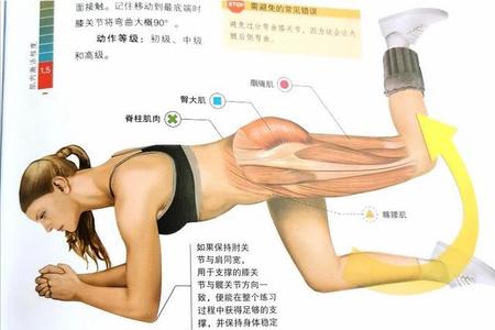 跪姿屈膝抬腿肌肉图解: