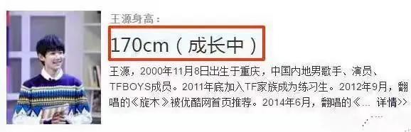 之前小时候在tfboy组合中,王源算是最早走红的,外形可爱,但随着年龄增大,王源也开始被外形限制了,连本人也忍不住在节目中求长高的方法呢!王源的身高,真的是一个痛呀,三小只一同出道的时候还是可爱少年,低一点没关系。现在其他两人都跟催化肥似的猛长个,就王源还保持在最低状态成长,那王源的身高是多少呢?最开始曝光是176但是和迪丽热巴同台一秒打脸