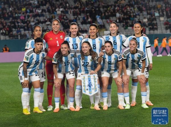 ↑阿根廷队首发球员在比赛前合影。新华社记者 郭磊 摄