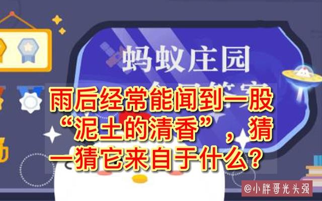 雨后经常能闻到一股“泥土的清香”,它来自于什么?蚂蚁庄园答案