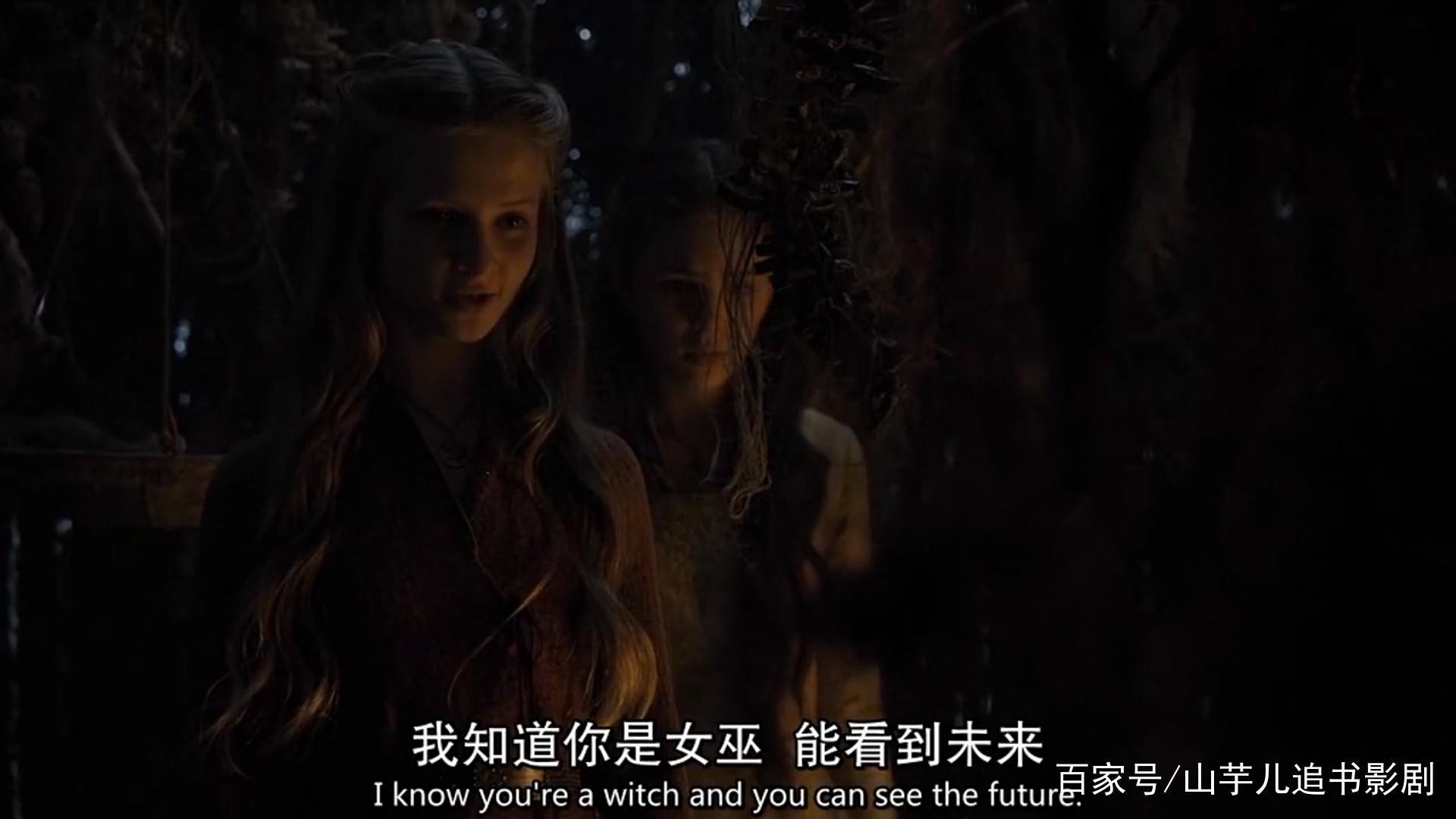 女巫告诉幼年瑟曦第二个预言,等她当上王后以后,有一个比她更年轻漂亮的王后会夺走她的一切。