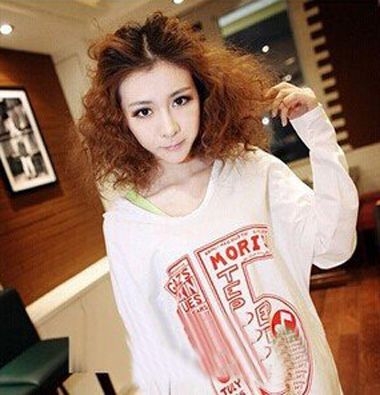 侧分齐肩玉米须烫发