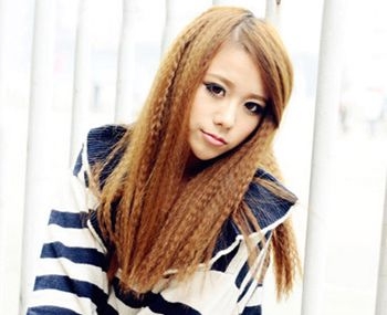 浅黄侧分中长玉米须烫发