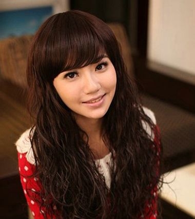 齐刘海麦穗烫长发
