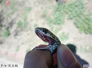 在一次上午拍摄中我突然接到一个电话,没在意手里的虎斑,结果松懈的我不幸被咬住右手拇指以下,此蛇咬住不放,并且不断咀嚼,把噬咬物体(我的手)向后推进至“沟牙”疼痛难忍,只有强忍拍照。拍完后骚动蛇身体让它松开,已经是鲜血淋淋。