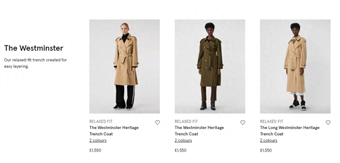 所谓“最经典”的Burberry风衣其实指的是"Heritage Trench Coat"这一大分类,而旗下包含很多不同系列,2016年以前有很多小分类,而现在品牌只归纳为三个系列:The Chelsea 切尔西、The Kensington 肯辛顿、The Westminster 威斯敏斯特。