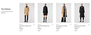 Chelsea系列的风衣是它家最修身的剪裁,腰线部分很贴合,衣袖部分也是比较合身的设计,整体上呈现纤细女人味的风格。