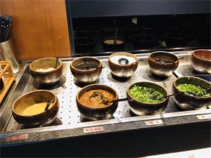 现在的装修风格和之前完全不一样了吧,六点之后就开始上人了,旁边几家餐厅都没有呷哺火,调料也由之前的袋装变成了自助小料,7块钱一份,免费续添,秘制芝麻酱,几乎不用再添加其他就可以吃,我还挺喜欢他家的麻酱小料,香菜,香葱,味噌,香菇酱,辣酱,蒜泥种类很多,唯独和之前不同的是没有沙茶酱了,难道涮各种丸子吃沙茶酱它不香吗?服务员说,早就没有沙茶酱了,有点失望。