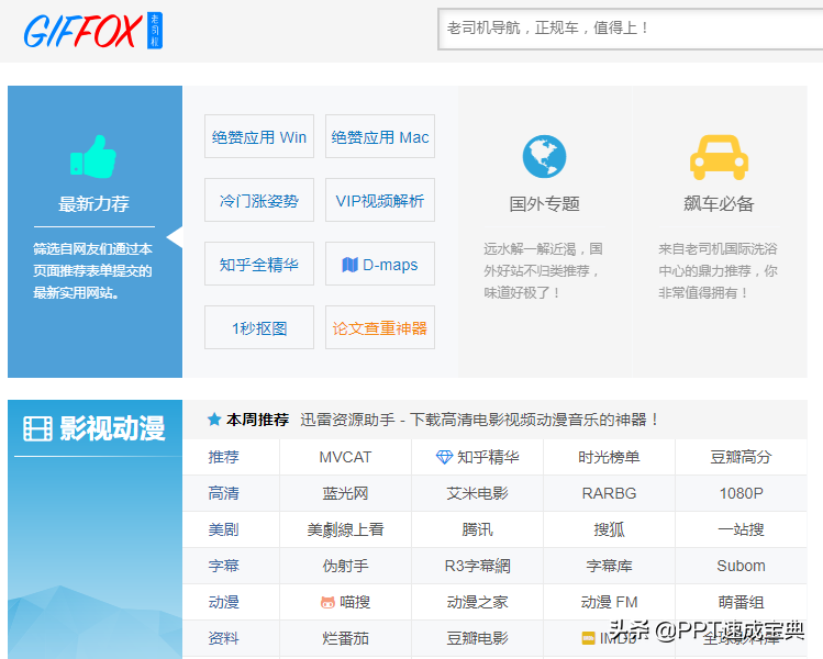 老司机导航,这是一个神器般的存在,这里各种各样的网站导航,在【最新力荐】、【国外专题】、【飙车必备】这三个大分类中,有很多是众多网友亲测好用的资源网站导航,在这里,没有你找不到的资源,想找什么资源都能快速找到,可以说是非常方便了。