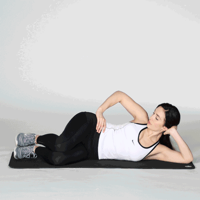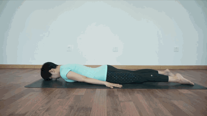 身体朝瑜伽垫躺下来,把手臂支撑在瑜伽垫上,双腿伸直,慢慢抬起上身,使耻骨和身体形成一条直线并接触瑜伽垫,保持30s;