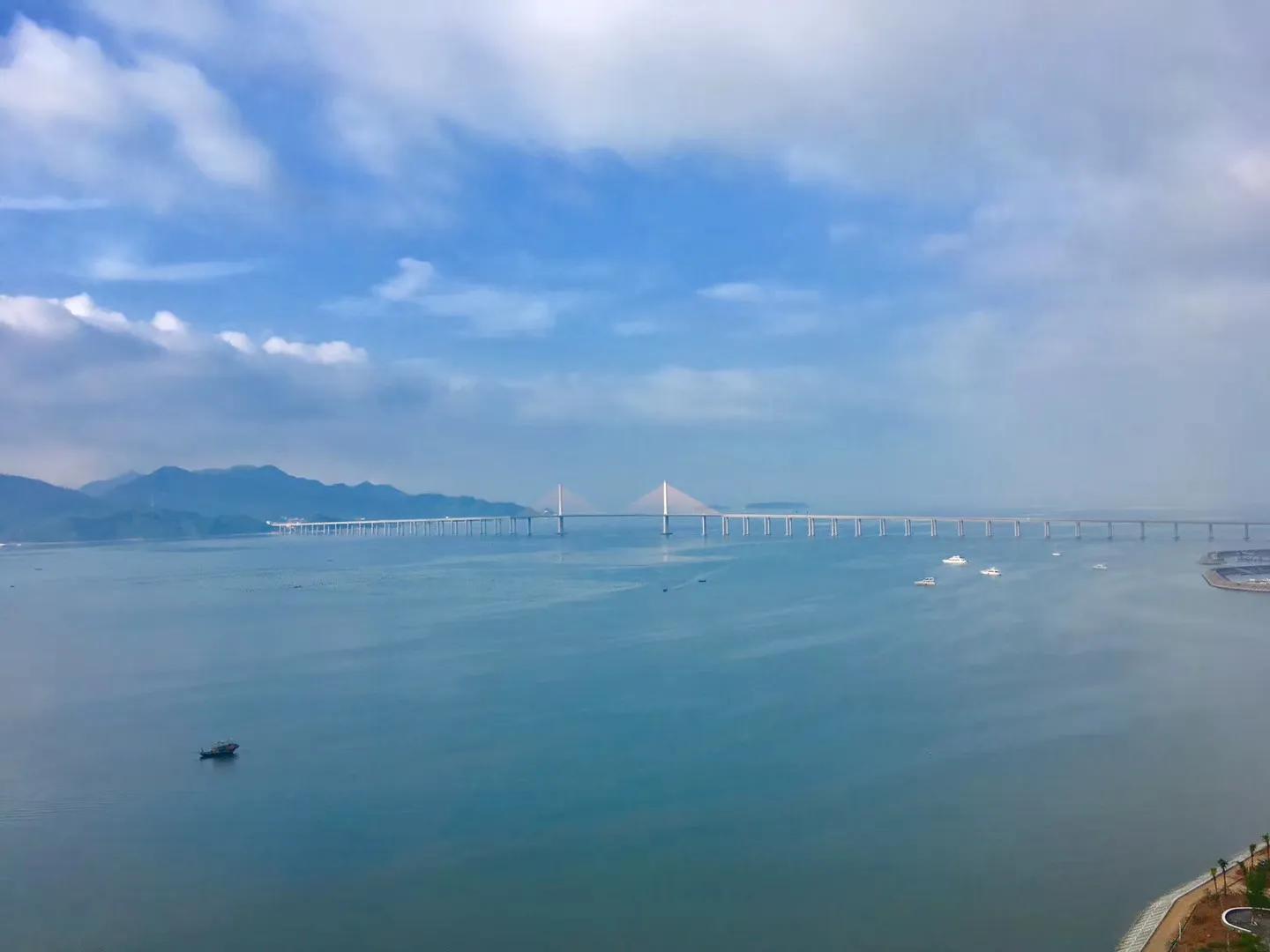 此行选择的亚婆角融创海湾半岛,在稔山镇,酒店位于亚婆角的深处,拥有一片私家海滩,酒店正面对惠州海湾大桥。但有一个缺点、这是内海,而且旁边有养殖场,海水没那么好。