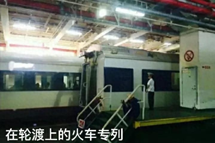 这里得提示一下,普通火车并非动车,只有一个火车头是有动力的,是怎么上轮渡的?原来是火车头靠后,前把无动力的车厢依次“推送”上渡轮的,推送一组就拆分开一组,依次全部推送上船,有动力的火车头最后上船。靠岸时顺序相反,火车头新上岸,依次让岸上铁轨对接渡轮上的不同铁轨(让车厢拖离渡轮),把上船时拆分开的不同车厢全连接,也算是让整个火车车厢组全上岸了…