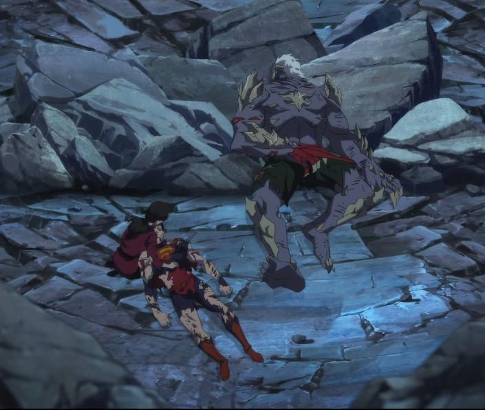 毁灭日刚出现的时候,正义联盟其他人轮番上阵,都不是对手。闪电侠、海王、火星猎人等人全都被打倒在地,WW也即将要被毁灭日杀死,在这千钧一发的时刻,超人出现了。