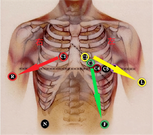 C4(棕):左锁骨中线第5肋间