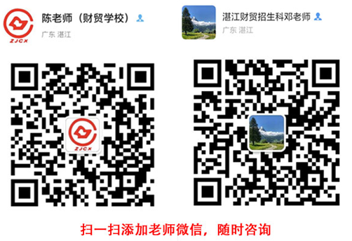 在省、市领导的亲切关怀和大力支持下,学校正以“三个代表”重要思想为指导,坚持科学的发展观,进一步加大建设投入,优化教育环境,整合社会资源,拓展办学空间,为创建国家级现代化示范性中专学校,实现跨越式发展而努力奋斗。想要读湛江财贸学校的,赶紧扫以下二维码来报名吧!