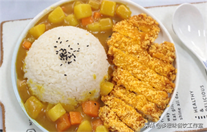 6、最后盛一碗米饭,鸡排切块,淋上咖喱汁就可以吃啦