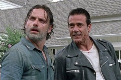 分析一下,上一季中瑞克制服了尼根,并割破了尼根的脖子,当我们都认为尼根必死的时候,导演并没有同意,导演决定让他活着,并且瑞克也是极力反对伙伴们杀死尼根,这是为什么?每一个对手都死在瑞克手下,唯独尼根活了下来,并受到了瑞克的维护,这不难看出,自从格伦死后,瑞克的扮演者就决定不再参演这部剧了,原因就是格伦在剧中的死法让他难以接受。