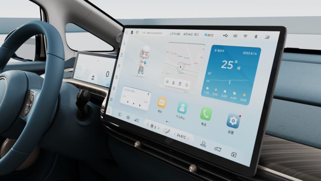 该系统采用 "L 形 " 交互布局,将自动大灯、空调、Autohold、360 影像、导航、门窗等 18 项功能集成在中控屏左侧及底部的状态栏区域。
