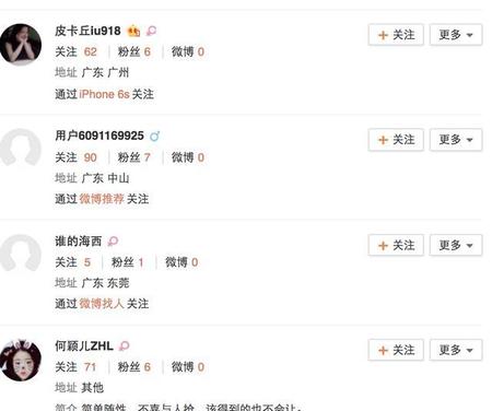现在打开谢娜的微博还有有很多僵尸粉,这些僵尸粉的特点就是几乎没有关注,但是却关注了很多人,而且她还不发微博,比如这些: