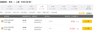 7.青岛--上海,2025年01月13日22:25出发,23:55抵达,特价90元!
