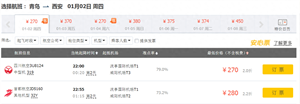 9.青岛--西安,2025年01月02日22:00出发,次日00:20抵达,特价270元!