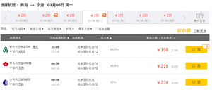 5.青岛--宁波,2025年01月06日21:05出发,22:45抵达,特价190元!