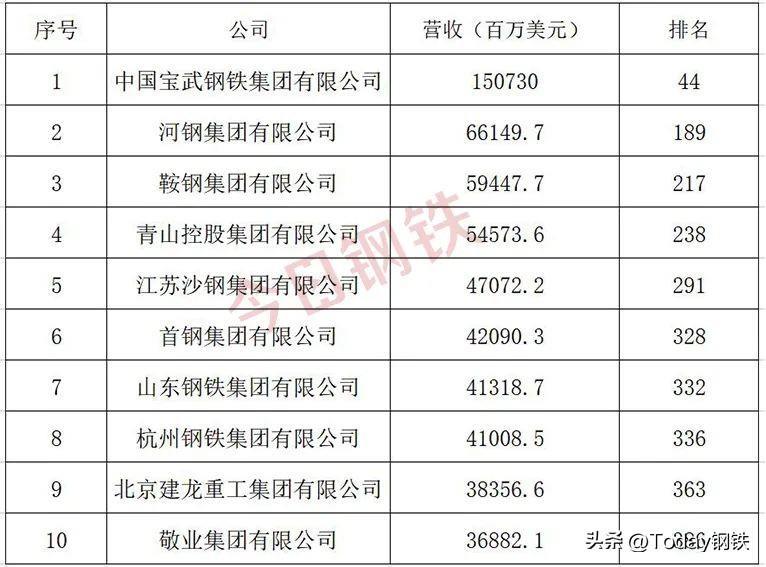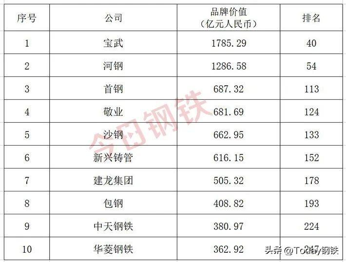 据企查查信息显示,目前我国的钢铁相关企业超过17.4万家(分类为黑色金属冶炼和压延加工业)。在如此众多的钢铁相关企业中,到底是谁能入围前十位榜单呢,笔者根据粗钢产量、营收、品牌价值等多个维度的排名,进行了汇总整理(仅用于示意展现)。具体情况如下: