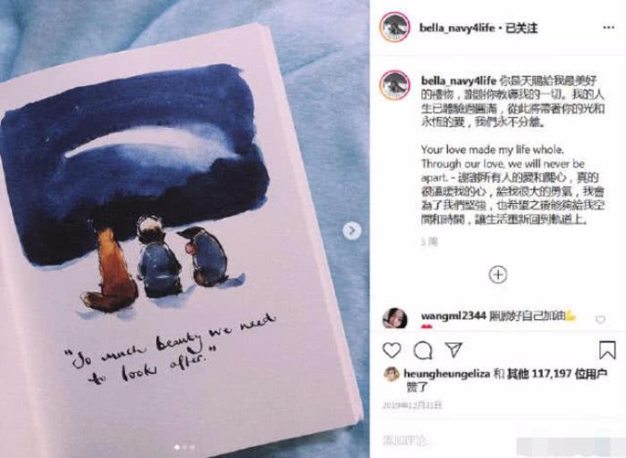 她提到:"你是天赐给我最美好的礼物,谢谢你教导我的一切。我的人生已体验过圆满,从此将带着你的光和永恒的爱,我们永不分离",并感谢朋友和家人对她的帮助,也希望大家之后能够给她空间和时间,让生活重新回到轨道上。