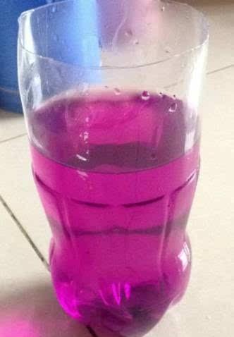 第三步,用高锰酸钾兑水,将水调红色。颜色不要太深。高锰酸钾是强碱线,颜色太深,变成紫色,碱性太强,容易破坏衣服面料的原来是纤维结构。红色刚刚好。将污渍处浸泡十分钟。然后用白醋兑水,将污渍处进行清理。