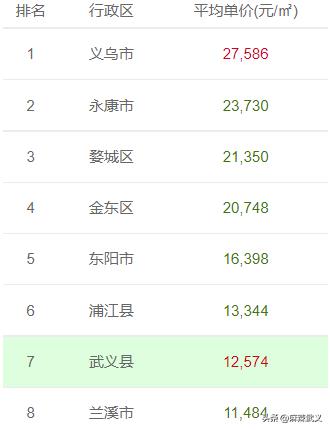武义的平均房价在金华市内的排名为第7位,本月也仅有武义县与义务市的平均单价呈现上涨趋势:
