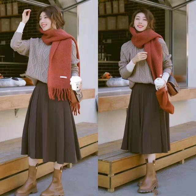 半身裙对于我们来说也是很平常的一种穿搭,对于冬天来说也是少不了的,好搭配又时髦,重点是很衬托女生的气质,不会很随性,满满的温柔感。