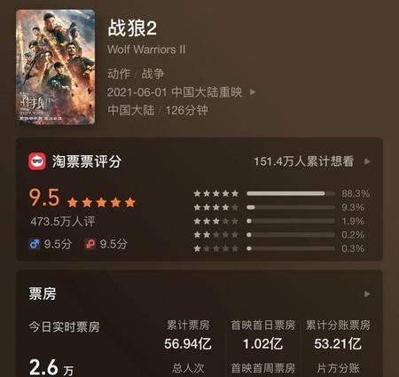 《战狼2》刚上映的时候非常火爆,首映首日的票房就达到了1.02亿,而总票房更是达到了恐怖的56.94亿!可以说战绩非常辉煌!